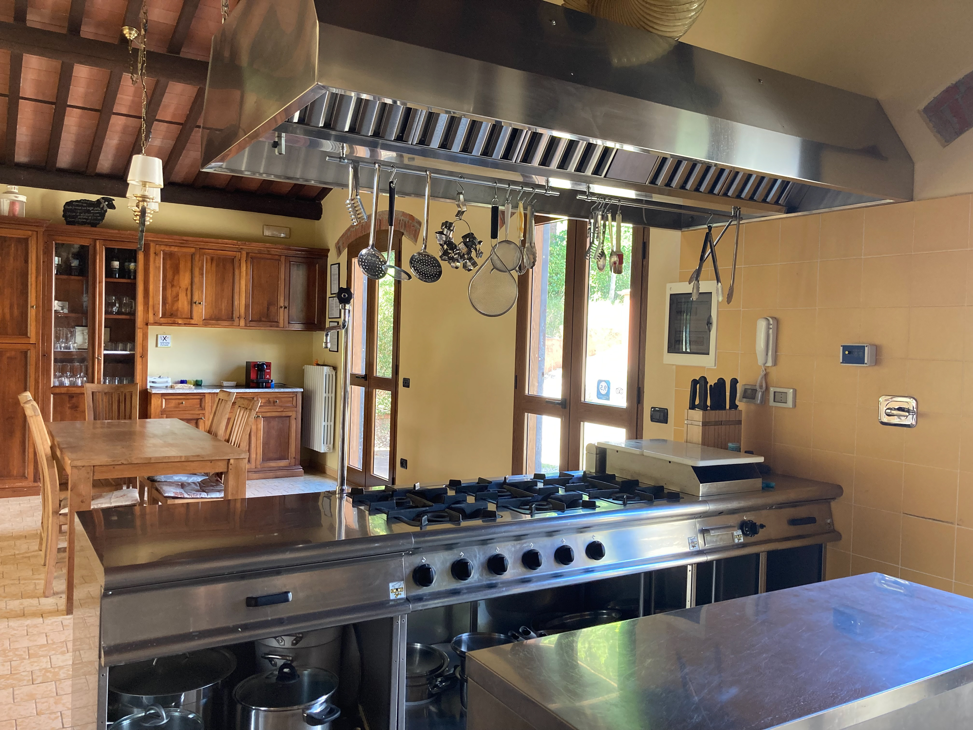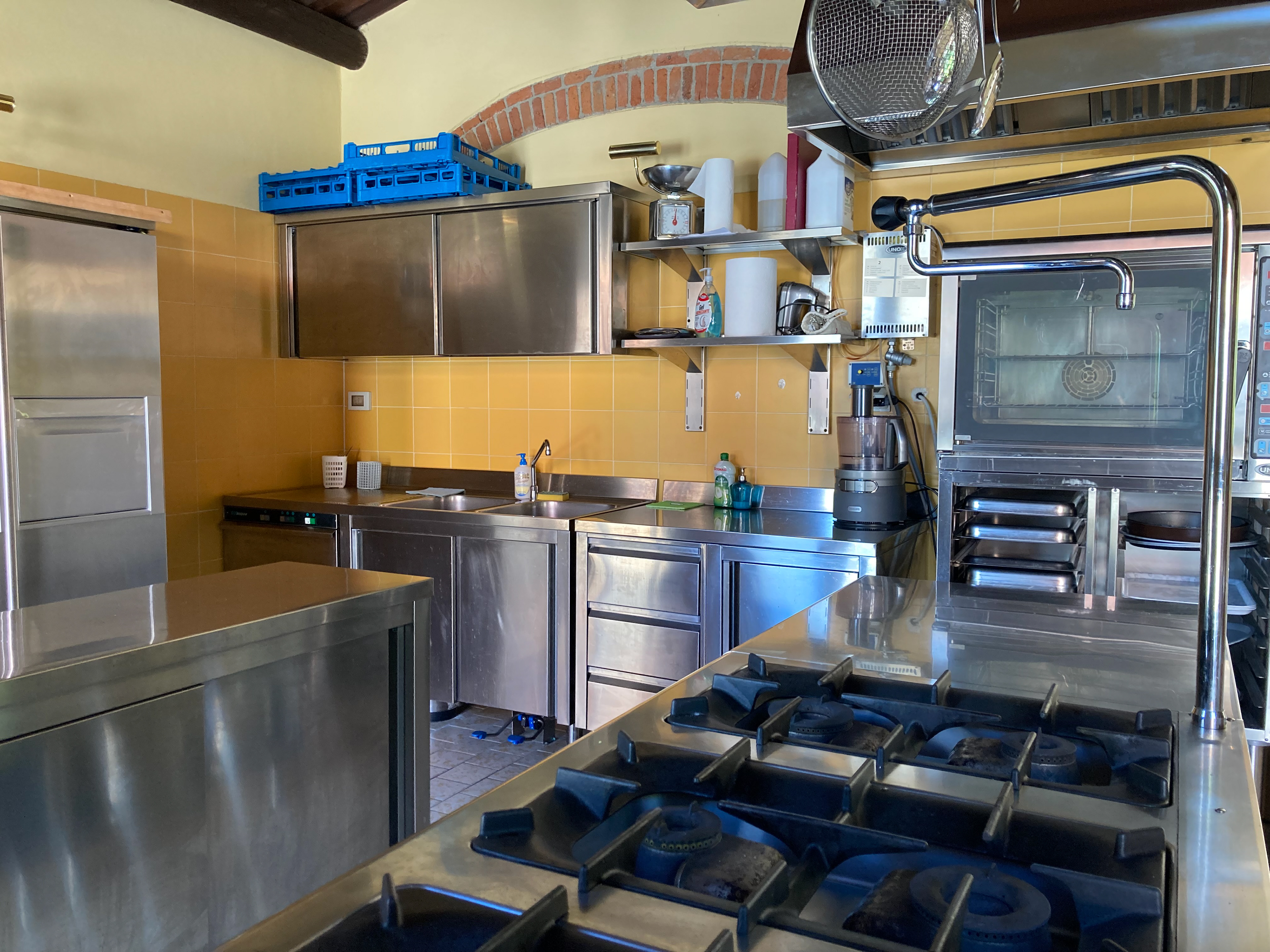 “Il Cantastorie” has a vast hall located in a former horse stable. This location has been transformed into a big kitchen equipped with professional-quality appliances. The hall is used for cooking lessons and tasting events.